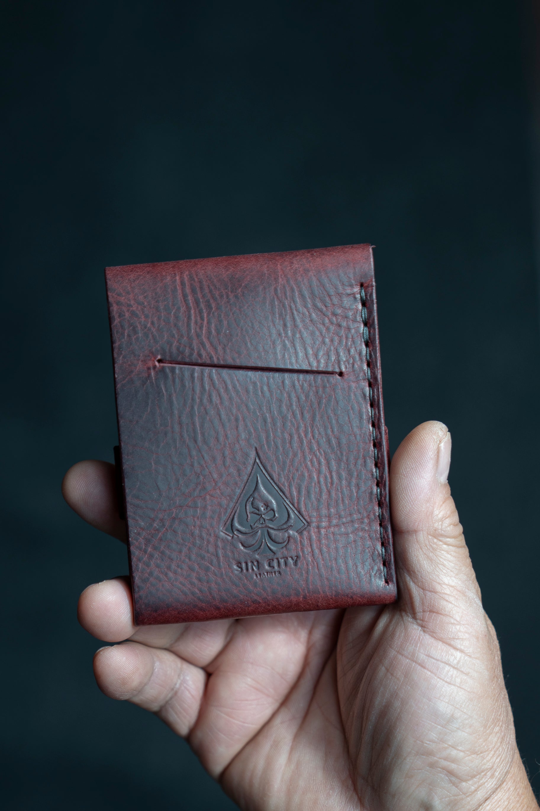 The Titan boasts a rugged and compact design with three card slots that can hold a total of 5 to 6 cards. accommodating up to 15 bills. also quick card access on the back if requested.